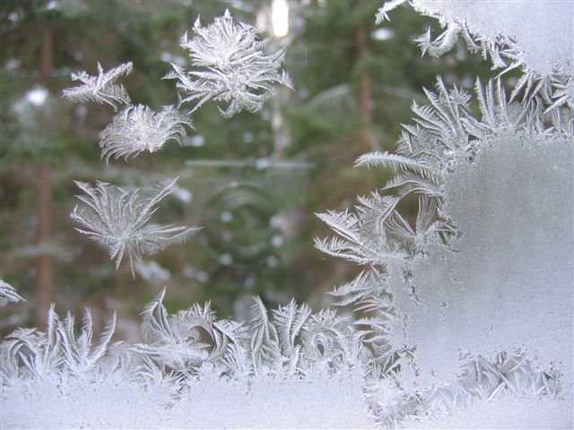 Cette nuit la Reine des Neiges a oeuvré: elle a fait son tour d'alchimiste préféré, transmutant en glace la vapeur d'eau contenue dans l'air. Sur les vitres, elle a fait éclore de somptueuses fleurs de givre.