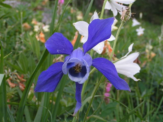 Si les fleurs sont plus nombreuses et plus petites d'un bleu violacé, il s'agit de l'ancolie vulgaire.