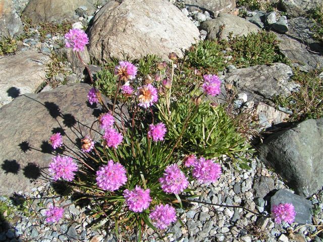 Ses tiges nues et raides, jaillissant d'une touffe de feuilles étroites et allongées, portent une inflorescence globuleuse de couleur rose vif. La plante pousse au dessus de 1700m d'altitude s'installant sur des sols variés: rochers, éboulis et même pelouses humides.