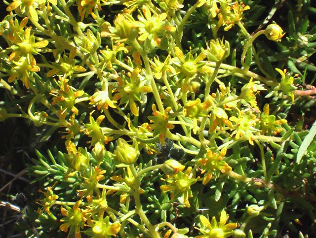 Une traînée d'or zèbre l'éboulis gris! En se rapprochant, surgit un minuscule filet d'eau le long duquel se penchent de robustes panicules de fleurs jaunes.