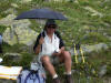 Les sacs sont déballés mais l’orage nous oblige à un départ précipité. Le ciel se dégage au cours de la descente et nous faisons une halte au milieu des rhodos en fleurs.