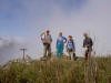 L’automne est déjà bien installé et les randos de proximité reprennent. Aujourd’hui direction les Bauges et la dent de Pleuven qui domine la vallée d’Ecole en Bauges. Dès le départ de Doucy le sentier est très humide mais dans la forêt il s’avère très glissant. Le soleil fait coucou avec les nuages et fait resplendir les couleurs automnales des érables. En arrivant sous la cascade nous nous apercevons qu’il a plu et neigé pas mal en altitude car nous sommes à la limite de la douche intégrale. Le sentier s’élève maintenant parmi les hautes herbes. Un petit col, et nous découvrons la croix minuscule du sommet. Le panorama majestueux se découvre à travers les nappes de brouillard qui remontent de la vallée.