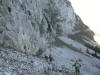 Ce gigantesque talus herbeux, perché juste au-dessus de Talloires, est idéal pour prendre l’heure de repos de la mi-journée. Au sommet de la plus haute dent (1824m) nous observons les hardis randonneurs qui n’ont pas craint d’en faire l’ascension un peu délicate. Le soleil, le bleu du lac et celui du ciel suffisent à notre bonheur. Petite séquence acrobatique tout de même au retour (histoire de maintenir la confiance en soi !) en descendant vers le grand pierrier au pied de la montagne. De sa traversée, pas très aisée, tous les genoux sont revenus intacts !