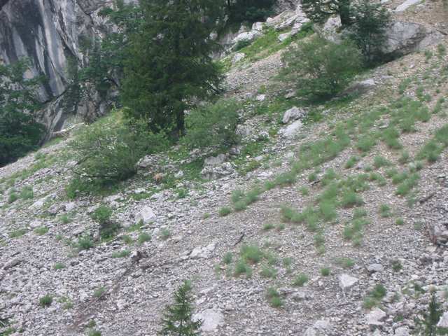 Le Grand Som, avec ses 2026 mètres d'altitude, est le troisième sommet du massif. Nous partons depuis le parking du lieu-dit Le Château à Saint Pierre de Chartreuse. Le chemin s’élève dans les bois, il est rendu difficile par les fortes pluies de la veille, attention aux racines particulièrement glissantes. Nous approchons de la limite de la forêt, nous nous taisons et marchons silencieusement avec l’espoir de rencontrer des chamois. Ils sont bien au rendez-vous habituel, ils sont quatre à nous regarder tranquillement de l’autre coté du vallon, notre présence ne semble pas les inquiéter.