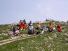 Cette montagne mythique, visible de tout le Bassin Chambérien et haute de 1933m, domine le Nord de la Chartreuse. Passé le Col du Granier, la promenade débute peu après le hameau de la Plagne près d’Entremont le Vieux. Ce chemin pentu et caillouteux, qui mène au Col de l’Alpette, nous est maintenant familier puisque nous l’empruntons chaque année pour rejoindre le Mont Pinet. Cette fois, arrivés dans les alpages, nous filons tout droit sur le sentier parmi les énormes blocs rocheux. Ils remettent en mémoire l’éboulement meurtrier de l’Apremont –tel était alors le nom de cette montagne- survenu le 24 novembre 1234. S’écroulèrent jusqu’à la plaine sur plus de 8km de distance, 500 millions de mètres cubes de rochers et de boues, anéantissant cinq villages (dont le village de Granier) et faisant 5000 victimes ! La montagne prit alors le nom d’un des villages engloutis, un nouveau village prit le sien, les vignes remplacèrent les champs de blés … et les printemps refleurirent par ici, comme aujourd’hui.