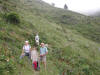 Sept heures St Inn s’éveille. L’objectif est aujourd’hui la Pointe de Rognier(2451m), superbe belvédère du massif des Hurtieres. L’age moyen de l’expédition est largement abaissé par la présence d’un valeureux lyonnais de 10 ans ½, Paul Hugo.