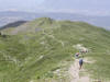 Arrivée au Col de la Perche, où le record de vitesse de nos amis revenant de la Pointe de Rognier et notre record de lenteur nous permettent de déjeuner ensemble. Retour par le plateau de vastes prairies avec vue sur le Mont-Blanc et les jolis pics de la Chaîne de la Lauzière.