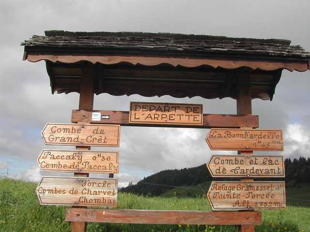 Une belle promenade longue et facile. Après la traversée de la Clusaz, le passage devant le lac des Confins, les voitures stationnent au « Départ de l’Arpette ». Devant la chèvrerie, les randonneurs pénètrent dans l’Alpage des Confins d’en Haut où les sympathiques vaches rousses s’approchent pour les accueillir. De nombreux nuages circulent dans le ciel bleu. Les lacets du chemin s’élèvent en douceur.