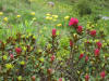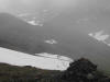 A mi-chemin petite pose au lieudit Paccaly d’en haut (alt. 1670m). Le lac est à 1h50. Jusqu’au Chalet de Tardevant (alt.1800m), nous apprécions la végétation où de nombreux rhododendrons en fleurs enrichissent les broussailles. Le brouillard peu à peu voile les crêtes. Là-haut, quelques névés s’attardent aux pieds des hauts rochers enturbannés de brume.