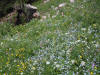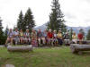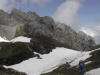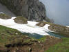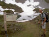 Il fait de plus en plus frais. Quelques soldanelles maigrichonnes et de jolies pensées frissonnent dans ces espaces que la neige occupait encore récemment. Guidés par l’étroit sentier, nous évoluons bientôt en plein brouillard. Emergeant de ce « nuage », nous voici au milieu d’un immense névé. Au-delà de cette combe, le panorama s’ouvre sur la Vallée du Grand Bornand chapeautée de nuages, qui profite d’un rayon de soleil pour s’éclairer. Le ciel trop chargé masque la Chaîne du Bargy. Nous poursuivons dans le brouillard qui nous poursuit ! Mais voici le lac de Tardevant à 2110m d’altitude. Il ne découvre que la moitié de sa surface encore frileuse dans son habit d’hiver. Au cœur de ce site sauvage et minéral, nous poussons vers les hauteurs plus dégagées en direction de la Pointe de l’Ambrevettaz. Ce supplément de dénivelée offre une jolie vue plongeante sur le lac que nous rejoignons pour le pique-nique. Un moment toujours empli de bonne humeur et de gaîté. Aujourd’hui 15 juin 2005, il se termine en dîner spectacle par une chanson mimée, à la gloire de la « buena polenta » !! Non non, il n’y avait pas plus de Clinton ni de génépi que d’habitude !