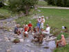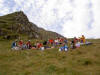 Dans la végétation pré automnale où les buissonnets à myrtilles prennent déjà leurs teintes cramoisies, nous rencontrons encore de jolies fleurs dont de superbes gentianes champêtres. Le circuit se termine vers la vallée étroite et profonde où nous attend la petite route qui semble, d’un côté, venir en butée contre la montagne d’où jaillit une haute cascade. Au-delà, c’est le Beaufortin. Nous lui tournons le dos pour rejoindre Laval. Les pieds surchauffés apprécieront la fraîcheur du torrent ! Sur le chemin du retour, à Granier, nous rencontrons Rosine, la sœur de Paul. Elle nous invite à prendre café et rafraîchissements. Quoi de plus sympathique pour terminer une si belle journée ?