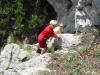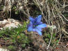 Le sentier, couvert de pierres, monte raide. Une ou deux gentianes bleues méritent une photo de Ginette.