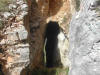 Après déjeuner, Pierre aurait bien prolongé sa sieste digestive mais on repart pour la descente. Halte aux Granges du Planet pour une séance genouillère de quatre Tamalous puis petit détour jusqu’au col du Planet. Une ou deux photos de ce curieux tunnel dans la roche à gauche du sentier et rafraichissement à la cascade. On y est presque, bientôt apparaît le village sur fond de verdure et le clocher de l’église.