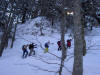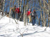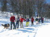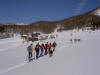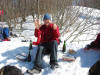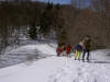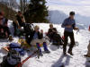 Chartreuse : enfin un nom évocateur, verte ou jaune va-t-elle remplacer le Clinton ? Pour aujourd’hui se sera non car nous nous arrêtons au col du Granier pour rejoindre la pointe de la Gorgeât et le mont Joigny. La météo est enfin favorable et c’est sous un soleil radieux que nous attaquons la rude montée au dessus des granges du Joigny. Certaines marmottes ayant somnolées tout l’hiver trouvent cette montée un peu rude, mais des encouragements bienveillants leur permettent d’arriver sur la pointe de la Gorgeât. A leur grand désespoir Pierre les informe que le célèbre Clinton sera pour le sommet du Joigny. Il faut donc affronter la forte et courte pente sous le sommet .Enfin nous voila arrivés .Et oh surprise ! Notre ami « Guibolles » tire de son sac quelques bouteilles de son pays, car comme dit la chanson : « on n’a pas tous les jours 3 fois 20 ans ».Jocelyne nous avait préparé aussi de délicieux gâteaux aux poires et noisettes, nous la remercions de cette délicate attention. Nous savourons toutes ces bonnes choses à l’abri du vent , face au soleil , tout en dominant Chambéry dans sa brume de pollution. Bien sûr, après ce régime le début de la descente fut un peu difficile, mais en arrivant au parking tout le monde était heureux de cette journée de soleil et d’amitié.