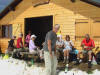 Installés à la terrasse d’un très joli chalet, au pied du Pécloz et de l’Armène, les douze randonneurs déballent le pique nique, la tête au soleil, les pieds au frais. Une belle journée de sports d’hiver un 30 mai !