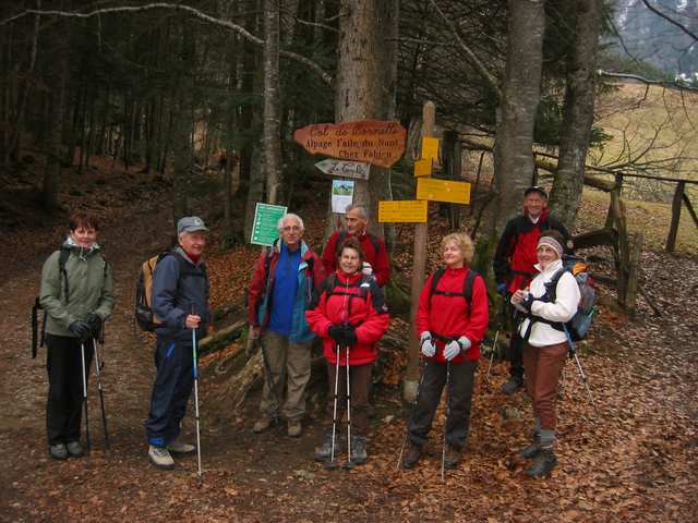 Tandis qu’un petit groupe de Clinetorandes a cédé à une envie de sable et de soleil en Tunisie, nous sommes dix fidèles au rendez-vous du mercredi. Direction Bellecombe en Bauge. Au parking du Reposoir, un mince tapis blanc résiste. Les chemins humides et souvent boueux nous conduisent, en passant par le Crêt du Char puis un joli passage en forêt, dans les alpages entre la montagne du Charbon et le Roc des Bœufs. Quelques névés persistent et permettent de « nettoyer les chaussures ». Le temps s’étant éclairci, le moment du pique nique est bien agréable, devant le chalet du col de la Frasse (alt.1379m).Au loin on devine le lac d’Annecy au-dessus duquel les Dents de Lanfon se dressent en sentinelles. La Tournette, vieille coquette aux formes généreuses, retient quelques dentelles blanches.