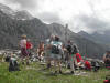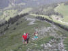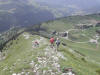 Petite halte sur un replat au dernier pylône du télésiège et distribution de fruits secs avant de repartir le long d’une seconde remontée mécanique. La pente est toujours aussi raide mais les marcheurs vont bon train. En effet le dénivelé de 800 mètres est avalé en quelque deux heures !