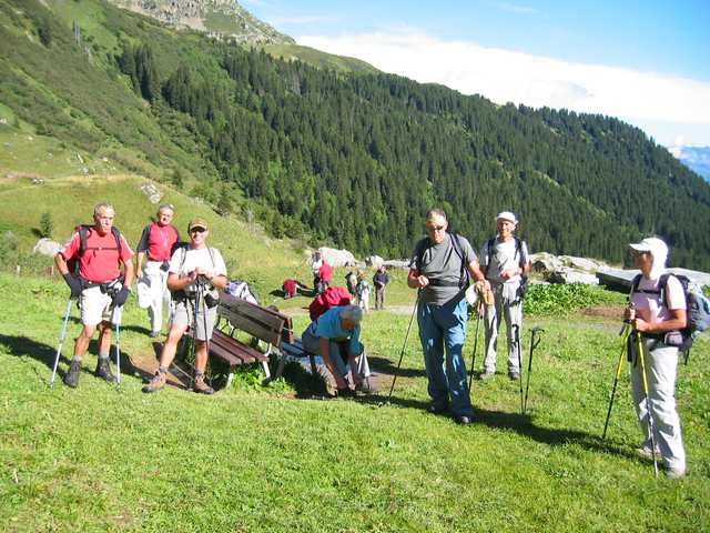 La météo est bonne. De la route de la Frasse, nous serpentons à travers une belle forêt pour remonter jusqu'au chalet du Truc. Très belle vue sur le glacier, le col et les Dômes de Miage, puis redescendons aux chalets du Miage. De là, un groupe gravit le col du Tricot tandis que l'autre groupe part en direction du Dôme de Miage. A 14heures, nous nous retrouvons pour emprunter ensemble le chemin du retour, chacun racontant son émerveillement.