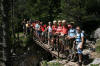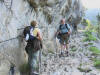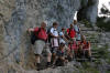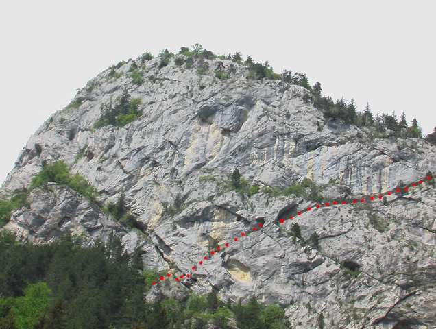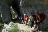 Après quelques lacets en forêt, nous abordons le tronçon taillé dans la falaise, avec son arche ; nous enjambons les passerelles des cascades à sec. Ce chemin très audacieux, taillé en pleine falaise en 1830 était destiné à l’acheminement du bois pour alimenter les fours implantés à la Verrerie. Il servit aussi aux alpagistes, aux braconniers et durant la seconde guerre aux maquisards, avant l’assaut qui les chassa le 26 mai 1944. Une chaîne posée en main courante assure un minimum de sécurité.