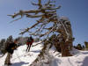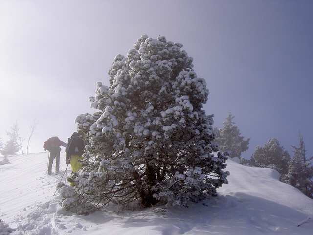Il en est de même pour des « clinetorandes » qui trouvent que cela a assez duré et qu’il faut se bouger un peu. Nous étions donc 13 au départ et le beau soleil du matin nous donne des fourmis dans les jambes, puisqu’en moins de deux heures nous étions sur le sommet des Auges. Fabuleux paysage que celui de la chaîne des Aravis avec en arrière plan le mont Blanc. Jean Claude toujours prévenant nous avait préparé le vin chaud et Cricri le célèbre saucisson de G.