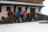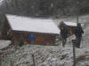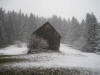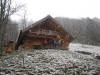 Six Clinetorandes au départ malgré la pluie annoncée en début d’après midi. Montée assez raide aux granges du Perchet, où nous recevons les premières gouttes de pluie. Pas question de rebrousser chemin, les chalets de Gruffy étaient au programme !! Bien vite, la pluie se transforme en flocons de neige tombant assez drus. Nous traversons des prairies déjà très enneigées ; grâce au bon sens d’orientation de Pierre nous piquons droit sur les chalets de Gruffy. Le refuge communal étant fermé nous déballons notre pique nique sous l’avant toit, certains assis sur des tas de bois, d’autres debout !!La neige ne cesse de tomber. Réconfortés par la soupe bien chaude et la Chartreuse de Marcelle retour aux granges du Perchet. Je ne saurai vous décrire la première partie du retour : tout était blanc autour de nous, brouillard, vent, neige vous cinglant le visage, et avec l’onglée difficile de tenir les bâtons, nos empreintes de pas avaient même disparues. Ouf ! A l’approche de la forêt, la tempête est terminée !!! Nous nous attardons au village d’Henri et admirons son travail minutieux avant d’emprunter le chemin dit de la prière, chemin pavé par les habitants d’Allèves à la fin du 19° siècle.