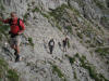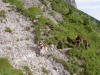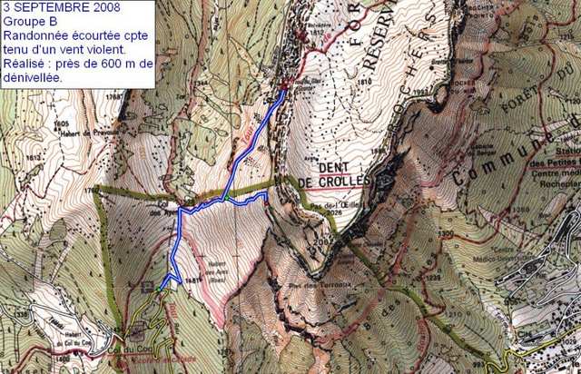 Un groupe part de Saint Hilaire du Touvet longeant la majestueuse falaise de la Dent de Crolles. La promenade est agréable, mais au fur et à mesure de la montée sur la sangle qui suit la paroi à l’aplomb de ces hauts murs calcaires, le vent se lève. Au pied du Pas des Terreaux, zone escarpée dominant le ravin, le vent est si fort que tous décident de faire demi tour. Ils rejoignent l’autre groupe parti du col de Coq pour déjeuner ensemble dans la prairie des Ayes, à l’abri de ce maudit vent. C’est promis gravir ce sommet sera pour une autre fois !!!