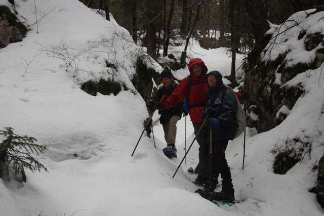 Malgré un temps non prometteur, six adeptes au départ. Quelques gouttes : deux déclarent forfait. Les trois grands gaillards Paulo, Bébert, Daniel R. et « Pinsabin »décident de s’éclater. Trois heures de marche très poussée dans une neige abondante et bonne. La pluie très fidèle nous escorte tout au long du parcours. Pas facile de s’orienter avec une visibilité réduite à 5 mètres : une belle expérience!!!