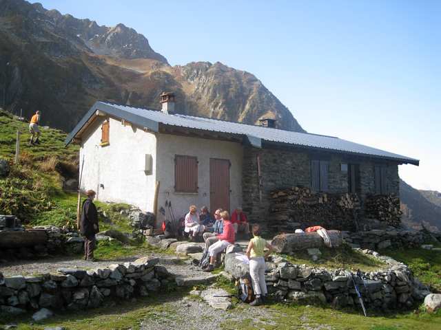 Le refuge de l’Oule, dédié à la mémoire d’Antoine Cros « père du ski dans le massif d’Allevard » (alt.1836m), accueille les randonneurs avec sa source, son poêle, sa copieuse réserve de bois, entre autres commodités. Aujourd’hui, grand soleil ; nous mangerons dehors, sans profiter des costaudes tables. Quatre d’entre nous ne se laissent pas retenir par le charme et l’intimité du lieu. Ils poursuivent plus haut, attirés par le glacier dont ils approcheront le pied dans environ quarante cinq minutes.