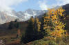 Avant que la montagne ne revête son manteau blanc, profitons de cette belle journée du 14 octobre 2008 pour parcourir quelques sentiers du massif d’Allevard. Une bien jolie promenade, depuis le hameau de La Bourgeat Noire (commune de Pinsot) alt. 1100m. Forêts somptueuses, végétation riche et conquérante jusque sur les hauteurs où, parmi les sombres sapins, pourpres, bruns et ors rivalisent de beauté dans la verdure jaunissante. Ruisseaux discrets, torrents impétueux, cascades généreuses et, pour fermer ce merveilleux décor, la montagne de l’Oule et le glacier du Gleyzin.