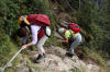 Site grandiose, pelouses d’altitude aux harmonieuses rondeurs entrecoupées de torrents, parcourues de sentiers aux destinations plus ou moins lointaines… Suivre l’un d’eux et, en quelques trois heures atteindre le Dérochoir… et descendre vers le désert de Platé et les cascades de Sixt… On peut rêver !... Après le refuge de Moëde-Anterne (alt.2002m) de nombreuses zones marécageuses, où fleurit la linaigrette, côtoient des mamelons couverts de rhodos et de buissonnets à myrtilles rougeoyants. L’automne naissant offre sa palette de tons chaleureux Dés le passage devant le ravissant lac de Pormenaz (1970m), le paysage se fait plus chaotique. Bientôt de hauts sapins masquent des gorges profondes à proximité du sentier caillouteux et rocheux. Au passage de la Chorde, de nombreux câbles sécurisent la descente. Nous arrivons en bas au milieu d’un superbe chaos où se faufile un torrent traversé à gué.