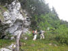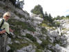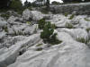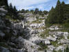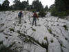 Le sentier longe plus loin une longue barre rocheuse, avant de déboucher sur des lapiaz et un plateau.