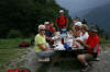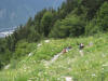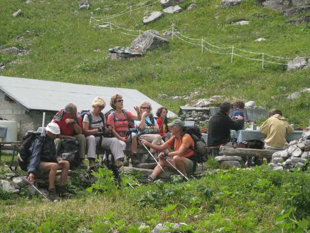 Après Chamonix et les Contamines nous passons de l’autre coté de la vallée pour rejoindre le hameau de Praz Coutant situé à quelques longueurs de la station de Plaine Joux. Nous logeons dans une résidence rénovée utilisée il y a quelques années par le personnel des sanatoriums du Plateau d’Assy. La vue sur le Mont Blanc est superbe. Le déchargement des voitures terminé un groupe se lance dans la rude montée du col de Platé pendant que d’autres rejoignent les chalets de Varan. Il fait chaud et humide et c’est avec soulagement que nous arrivons au refuge de Platé. Le casse croute vite expédié nous continuons vers le col de Portetta et là parmi les bouquetins nous découvrons le merveilleux paysage des aiguilles de Chamonix. Retour vers la résidence où déjà nos amis préparent le repas.