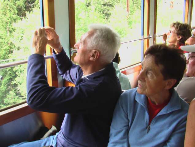 Certains en rêvaient depuis longtemps et la météo n’étant pas trop mauvaise nous nous dirigeons tous, ce mercredi matin vers le train du nid d’Aigle. Ce train est utilisé par alpinistes voulant accéder au Mont Blanc par la voie classique du refuge du Goûter. Nous sommes maintenant dans le domaine de la haute montagne. Beaucoup de monde sur cet itinéraire où nous entendons parler toutes les langues .Presque tous sont bien équipés de matériel que nous ne rencontrons pas d’habitude. Mais à plus de 2500m d’altitude la météo est changeante et nous sommes accueillis par des bourrasques de vent. La pluie ne tardera pas ne nous permettant pas de voir le refuge de Tète Rousse. Retour précipité vers St Gervais.