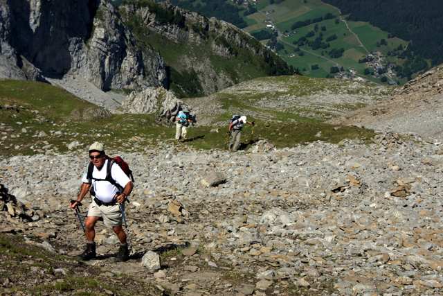 vigilance à la descente, le terrain caillouteux se dérobant facilement sous les