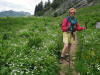 Départ village des Confins : domaine du ski de randonnée en hiver, paradis des promeneurs en été. Notre première incursion dans le massif des Aravis se justifie avec un objectif géologique : le Trou de la Mouche, curieux tunnel dans la dernière lame rocheuse qui sépare la Combe de Paccaly et celle du Grand Crêt. Le sentier reste bien tracé avec la présence des derniers névés et de nombreuses fleurs, notamment la saponaire faux basilic qui habille en tapis aux tons carmin, les bas flancs des montagnes.