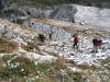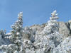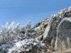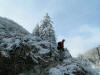 Du col de Bornette nous nous dirigeons à vue dans un pré en direction des Chalets du Pétet. Sur notre droite un spectacle inattendu : de la neige habille les verts sapins. A l'intersection, nous préférons la montée en direction de La Combe…sur le sentier des écureuils !!