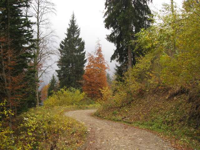 Eh bien oui, il a eu tout faux ! Nous sommes montés au col Chérel en sous bois très coloré, avec une douceur agréable et le murmure du ruisseau . Mais au col le brouillard est bien là !