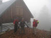 Au rendez vous point 1728m, nous rejoignons « une petite cabane lingerie » pour déjeuner. Ce n’est pas le grand luxe…. mais qu’importe nous sommes à l’abri ; nous retournons un bac plastique en guise de table, et bienvenus au Clinton et repas chauds…