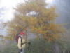 « Marche ou crève, lance Philippe, le GPS est programmé Chalet de Massoly, on y va !! » Nous empruntons un sentier qui grimpe, qui grimpe au beau milieu de beaux mélèzes jaunes et de plaques de neige, mais aucune, aucune visibilité. Nous imaginons l’épaule Nord de l’Arcalod devant nous, le Trélod derrière nous !