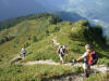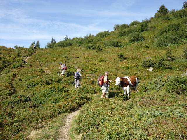 Après une arrivée chaotique au parking, nous nous lançons à l'assaut du Grand Arc. Pour certains le départ est programmé par le GPS : montée par le pas des chèvres, le lac Noir , le char de la Truche et descente sur un sentier super, abrupt (mais non balisé) au beau milieu des myrtilliers . Pour les autres, circuit des crêtes pour atteindre le point culminant du Grand Arc 2484m.
