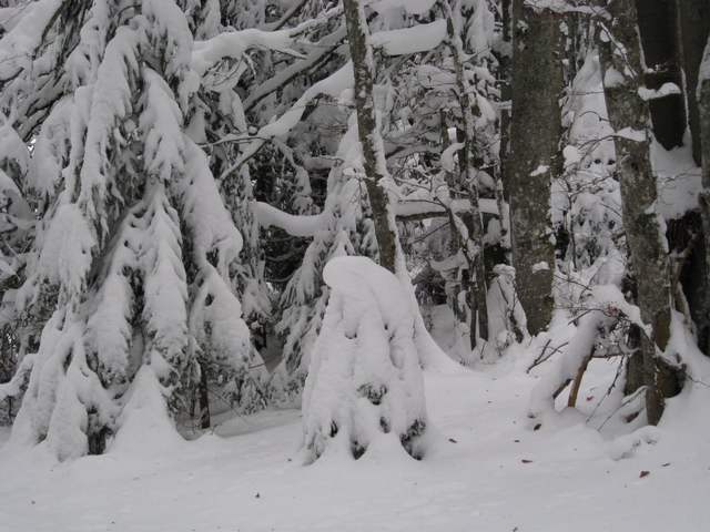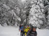 Première sortie raquettes dans de bonnes conditions où tout était réuni : douceur du temps, abondante neige fraîche, décor féerique des grands sapins revêtus de leur long manteau blanc où en les observant plus longuement nous découvrons des formes factices d’animaux, et beaucoup d’empreintes de « vrais » animaux qui avaient gambadé et dégarni les souches d’arbres en quête de nourriture. Pour couronner le tout, une bonne ambiance avec grog, nouveau Clinton et des gâteries, bien sûr.