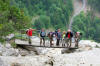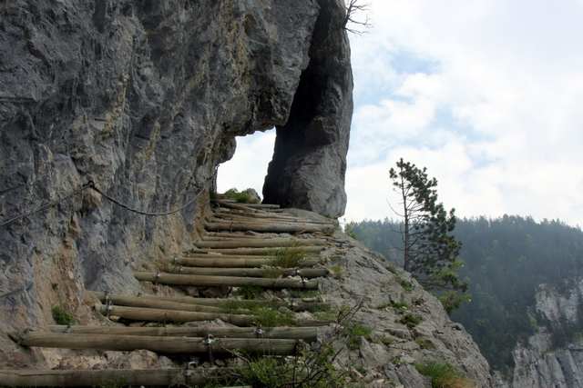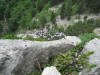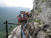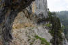 Du pont de pierre (947m), après quelques lacets en forêt, nous abordons le tronçon taillé dans la falaise avec ses arche, nous enjambons les passerelles de la cascade pour pénétrer ensuite dans l'alpage de Champ Laitier. Tous en forme, nous poursuivons jusqu'au col de Landron et le Trou de la Pierre ( 1905m).