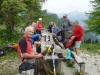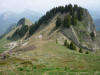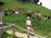 Le sentier assez pentu s’élève en forêt, s’ouvre sur des alpages, offrant tout au long de magnifiques vues sur les montagnes environnantes. Peu après le col des Nantets (1426m), le lac d’Annecy apparaît et le panorama s’enrichit au fur et à mesure de la montée. Grimpette dans les rochers au Pas de l’Aulp pour atteindre le Roc de Lancrenaz ( 1572m). La majeure partie du groupe poursuit son périple vers l’Aulp Riant, le Crêt des Tervelles, la Pointe de Talamarche ( 1860m), pour redescendre par les alpages de Larrieux. Quatre retardataires préfèrent savourer la beauté et la quiétude de l’endroit et s’en retournent par le même chemin qu’à l’aller. On apprécie ainsi ce que l’on n’a pas vu en montant. Petit arrêt désaltérant au chalet de la Froulaz où les nombreuses chèvres bien sympathiques viennent tout juste de regagner leurs quartiers d’été.