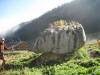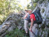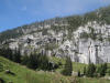 Au départ du Collet du plateau des Glières et du restaurant notre randonnée débute sur un chemin horizontal puis une descente assez longue, eh oui, je dis bien une descente sur le chemin des Moussières. Un long périple vers le haut du vallon avec peu de marquage me parait fastidieux. Mais ce vallon d’Ablon s’étend au pied de beaux rochers sculptés par l’érosion jusqu’au col de la Bourse 1664m. De là nous grimpons vers un sentier sauvage mais le brouillard est présent, les pierres sont glissantes, nous décidons donc de rebrousser chemin nous promettant de revenir juillet 2012 avec le nouveau GPS opérationnel de Daniel.