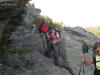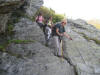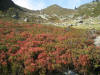 Tout le monde se retrouve sur le chemin du retour, celui passant par le Pas des Chèvres au milieu d’une végétation flamboyante : le feuillage des myrtilles a pris ses parures d’automne !