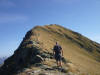 Une montée assez régulière dans un environnement majestueux. Contournant de profonds vallons, une succession de croupes herbeuses derrière lesquelles même le Grand Arc semble se cacher. Quant au Lac Noir, il se fait désirer. Toujours invisible au sommet du petit col (alt. 1950m) ! Au loin vers le sud, le Pic de l’Etendard et son glacier étincellent. En chemin, on peut admirer la beauté des rochers aux tons nuancés comme des marbres. Quand le premier groupe arpente déjà là-bas la longue ligne de crête menant à l’étape finale (2484m devant l’intéressante table d’orientation), le second groupe reste captif des charmes du Lac Noir, enfin découvert, blotti dans son écrin à 2014m. Il fait trop beau pour se priver d’une longue sieste dans un décor si accueillant !