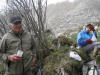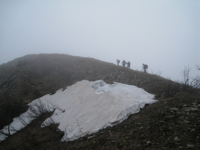 Sur le sentier des crêtes, un vent fort nous saisit dans le brouillard , quelques névés subsistent ; malgré tout nous dénichons un joli coin abrité au pied des sapins pour déjeuner. Sur le parcours nous admirons les jonquilles, peu nombreuses…
