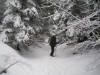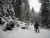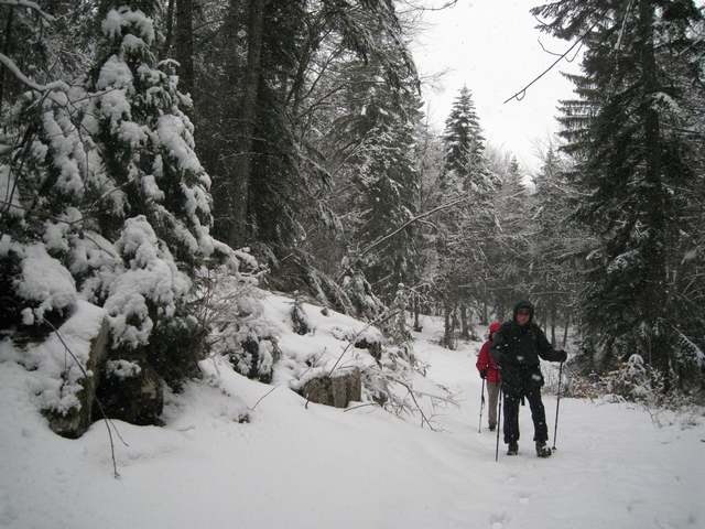 Parcours de 17km avec dénivelées... positive 1073m , négative 1266m . Pourquoi des chiffres aussi élevés ? Tout simplement, au trois quart de notre parcours, les bûcherons sont là , de grands sapins obstruent le sentier dans tous les sens, et avec l'épais manteau neigeux, les repères se perdent. L'heure avance, le bruit des tronçonneuses résonnent trop près de nous, nous prenons donc la sage décision de faire demi tour....Nous sommes tous conscients de la longueur ...Pour oublier certaines douleurs physiques nous prenons le temps d'admirer furtivement la beauté du paysage et de raconter des blagues. Des "matefaims savoyards "nous remettrons bien vite en forme !!! C'est sûr nous referons ce circuit au printemps.
