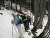 Une montée tranquille en forêt, un franchissement aisé d’une zone de plusieurs barres rocheuses débouchant au Pas du Croc et nous voici arrivés sur la butte du Sire enneigée. Encore quelques centaines de mètres à franchir pour déballer notre pique nique plein sud, sur l’herbe sèche parmi les premiers crocus. Un retour au choix : soit la Croix du Nivolet et les échelles pour nos trois chevronnés du jour, soit le sentier du garde pour entamer ensemble la descente …une série de lacets très courts, recouverts de feuilles sèches à l’intérieur de couloirs terreux. Une belle journée.