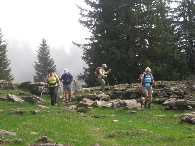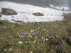 La journée fut idéale pour aller à la rencontre des crocus, des cils à deux feuilles ,des soldanelles et des pétasites blancs bien présents près des névés .Dans la forêt entrecoupée de clairières particulièrement fleuries et odorantes nous avons admiré le muguet, les pensées ,le populage des marais, les jolis bois, les gentianes, les gagées de Liotard,les orchis, une anémone solitaire !! et sur les rochers les primevères auricules. N’oublions surtout pas la beauté de la clématite violette découverte près du sentier par Pierre. Les marmottes commençaient elles aussi à gambader dans les prairies verdoyantes.